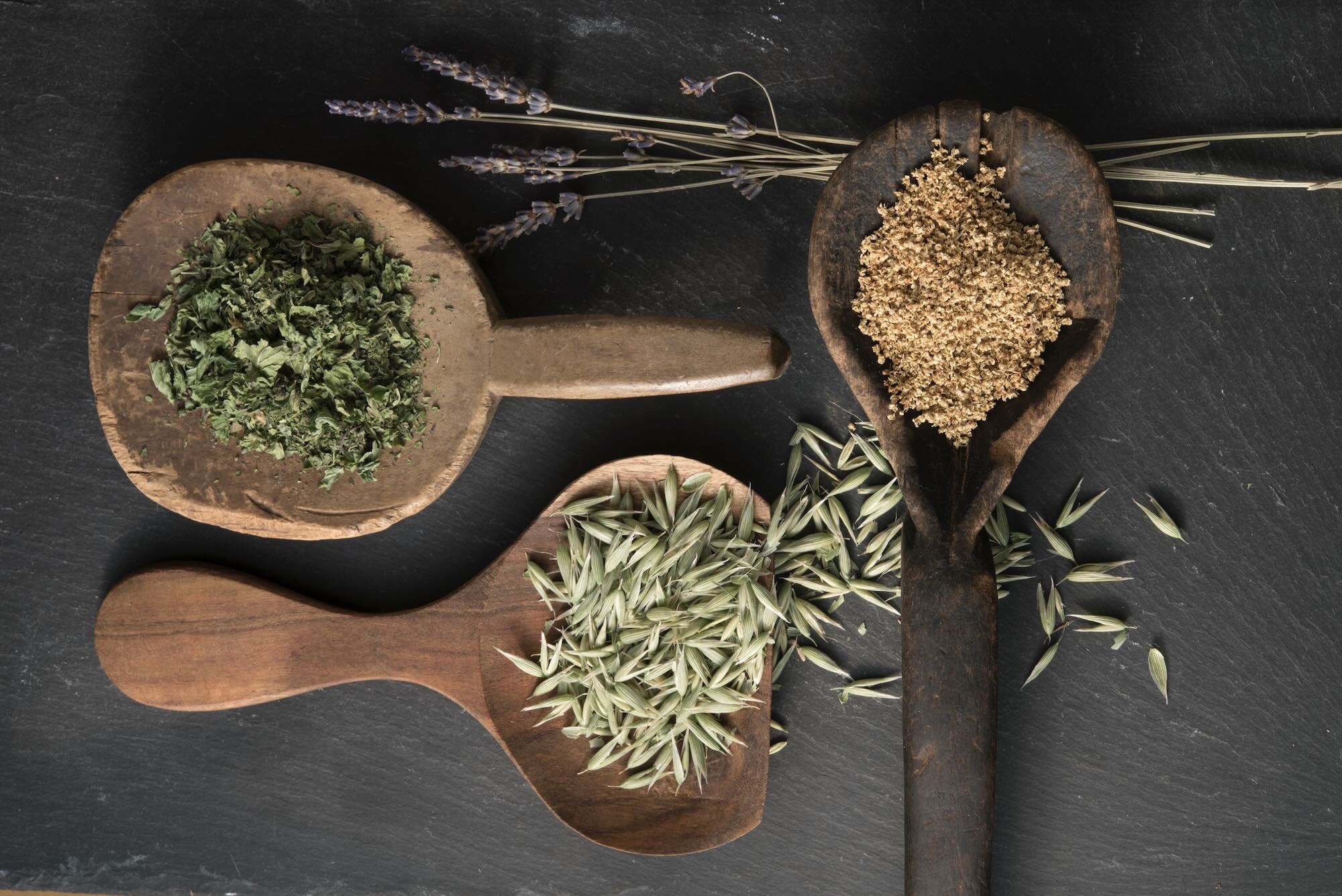 Lemongrass, lemon balm, lemon thyme, maple-infused rhubarb, milky oats & tulsi.